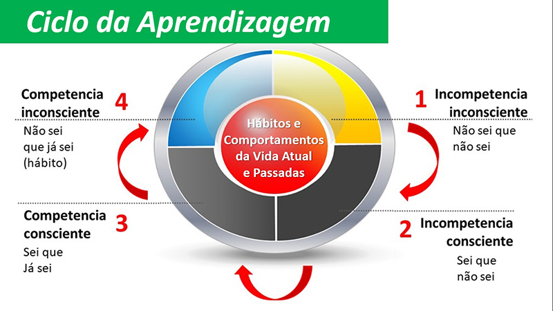 E, para adquirir conhecimentos, habilidades, requisitos, competências, é necessário reconhecer o estágio em que se está para entender o processo de desenvolvimento.